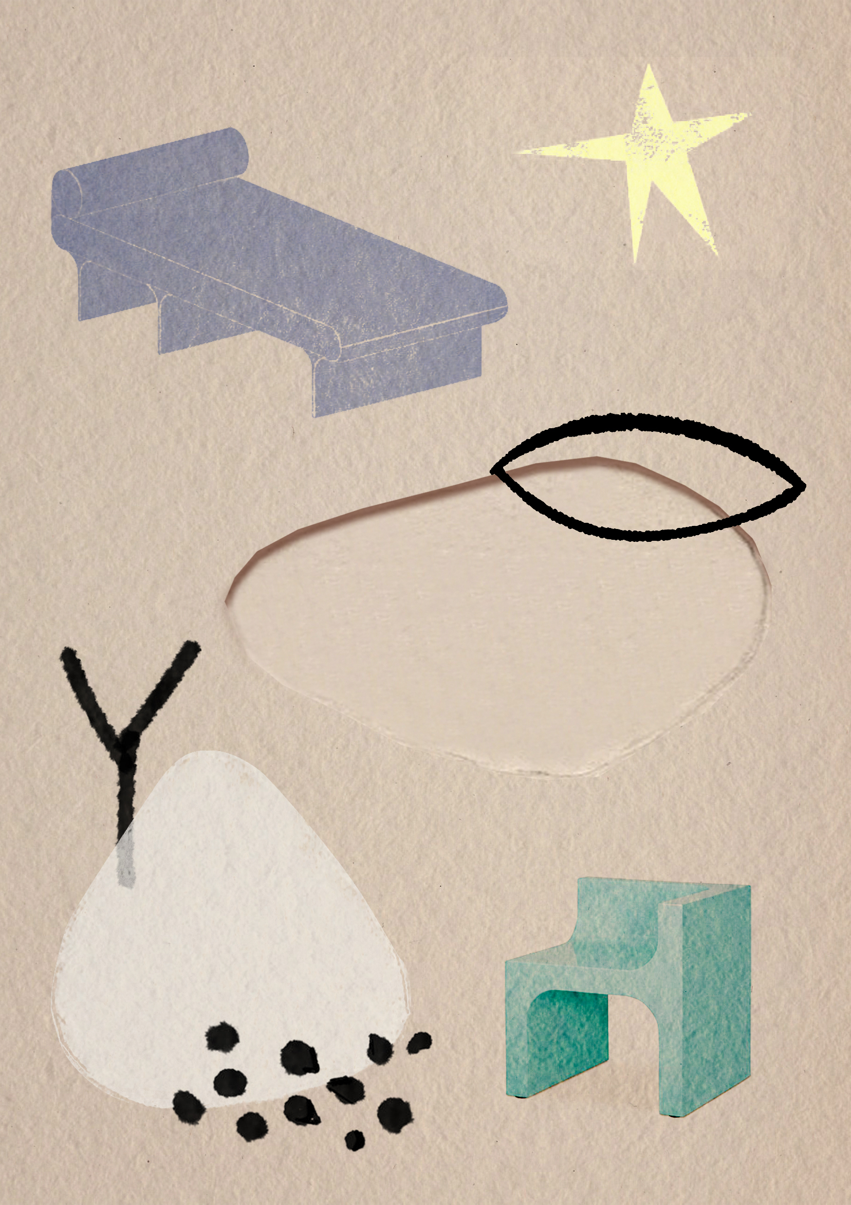 The room curated by Studiopepe is called Omphalos, the “navel” or ancient centre of the world. This is the most secret, intimate room, the theatre where our emotions and rituals unfold. The architecture is that of a tent, the lieit motiv of Campo Base, a fluid and impermanent architecture featuring two smaller, circular architectonic sculptures. The first is a tearoom made of handcrafted wood, a place for meditation that echoes the Japanese concept of Tokonoma. Whereas the other, dedicated to the Sibyl, is a diametrically opposed room of questions and answers, made of split limestone. The exterior hosts a place of encounters, dominated by an almond-shaped rug in knotted wool, a powerful symbol of secrecy, the spiritual essence, the mystery that each of us holds inside. The furnishings are also designed by Studiopepe, in previously unseen versions in precious or humble materials made precious by the artisanal workmanship. The raw linen tent walls feature hand-painted apotropaic drawings reminiscent of the strokes of people who would paint their homes with protective symbols.