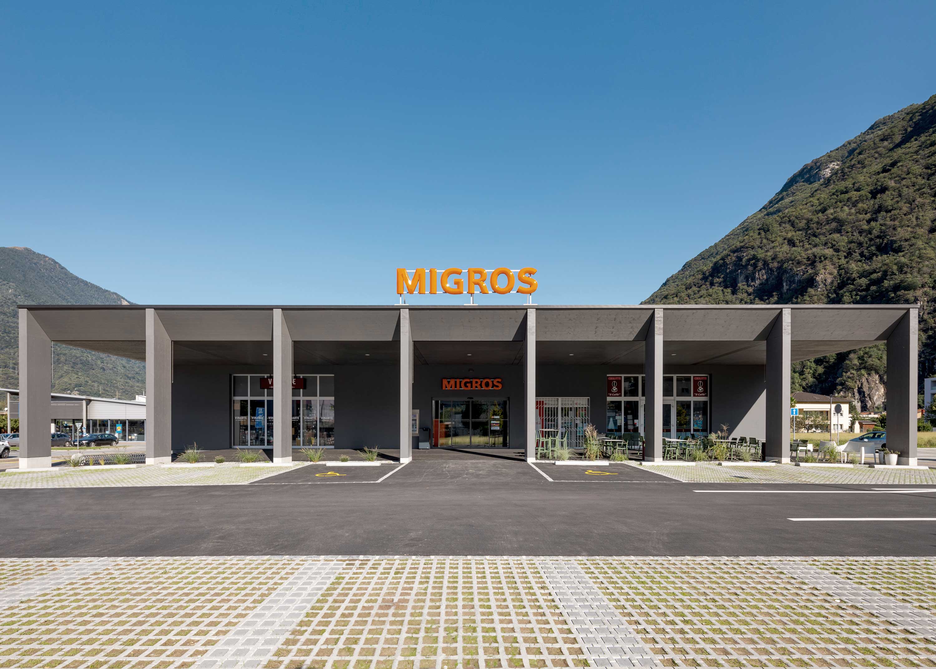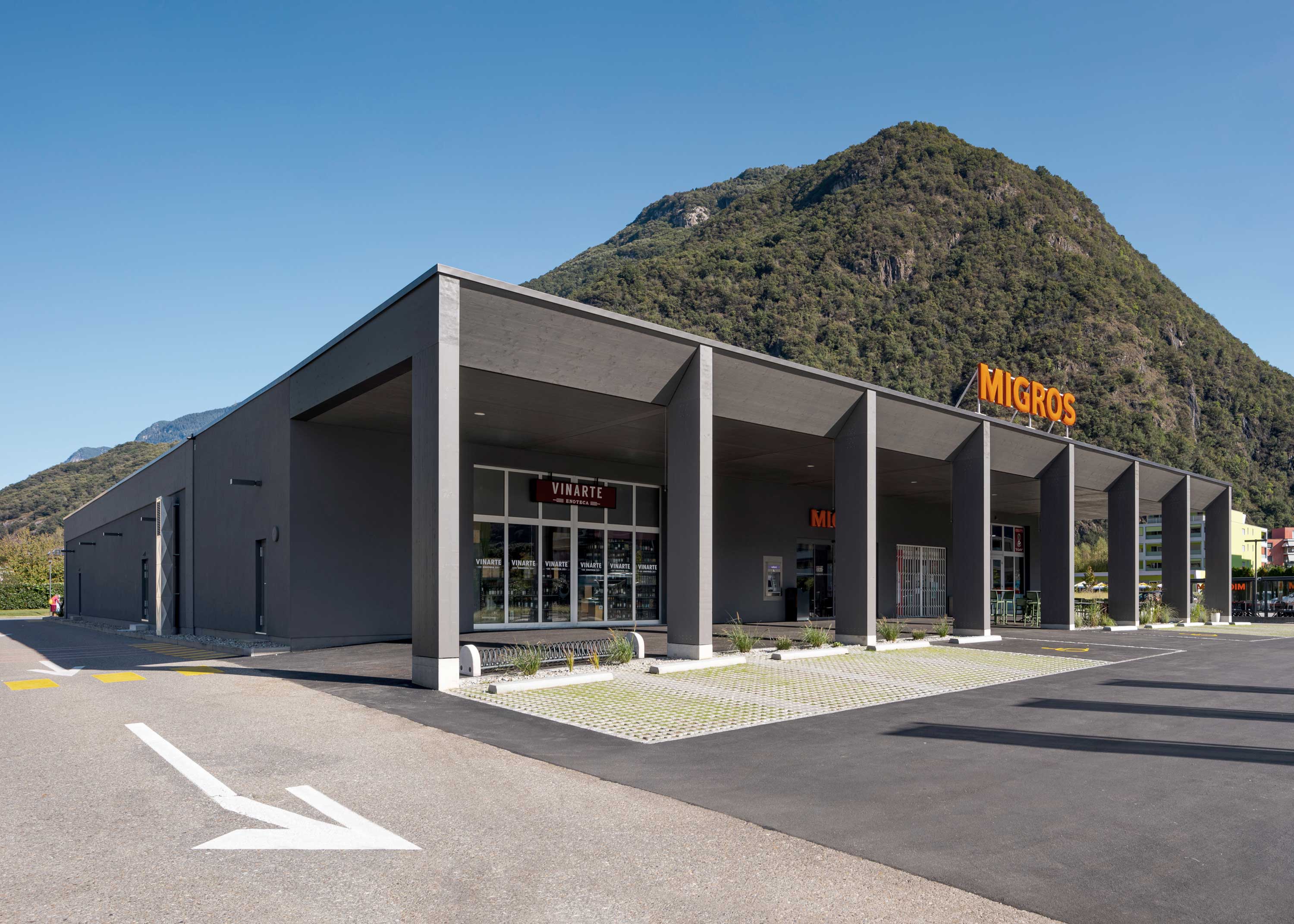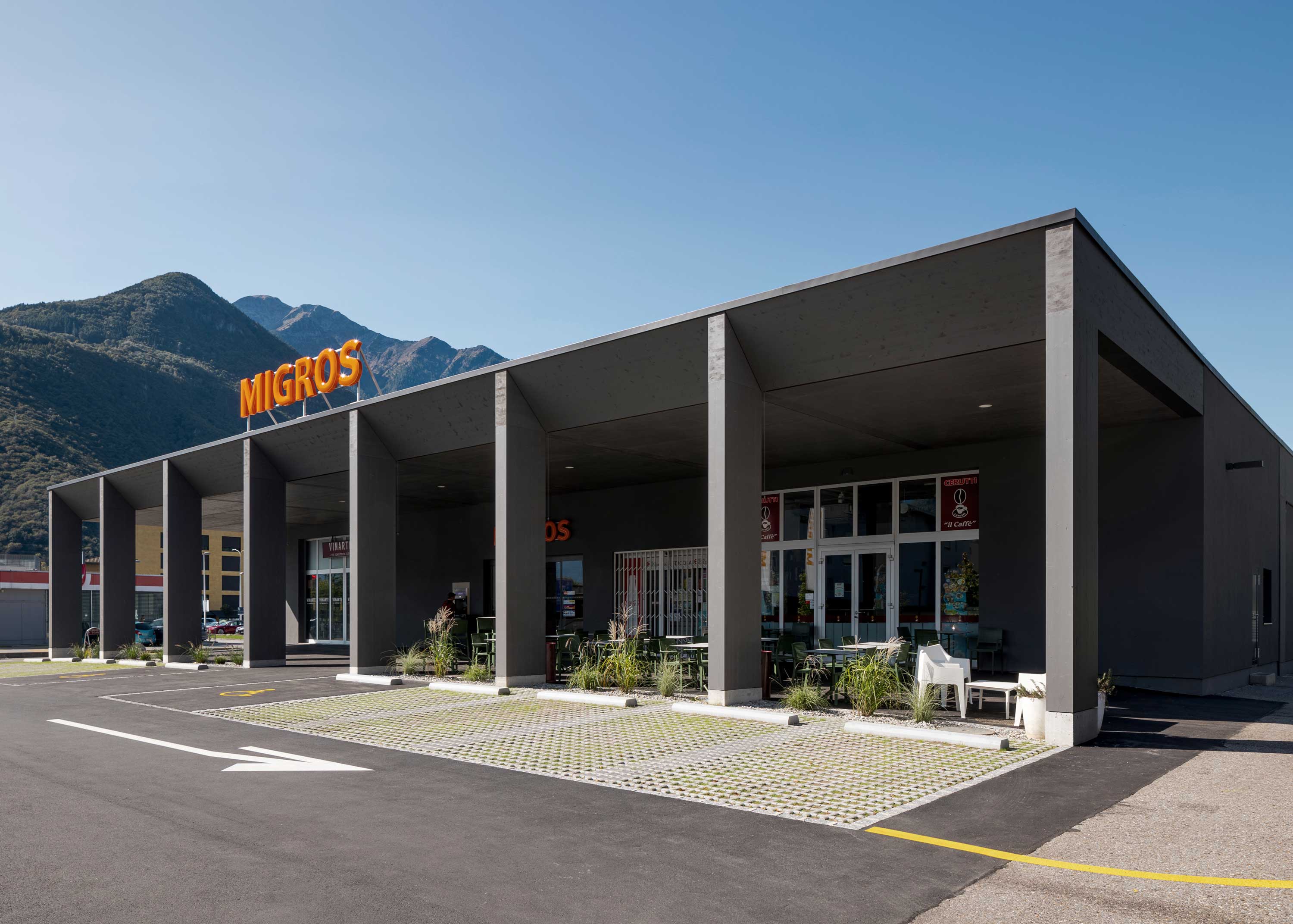 A modernization, that of the Migros headquarters in Arbedo-Castione, which brings a project from the early 2000s into the contemporary, thanks to the radical reorganization of the paths in favor of greater clarity of circulation and with a new architectural element that makes it unique. With a desire to create a distinctive design feature between the old building and the new, Denicolà Architetti Associati designs a fir wood porch. The 45-degree slope of the fronts allows light to enter inside and gives lightness to the structure, while the color choice of dark gray is intended to make the historic orange logo stand out as much as possible. Prefabrication allowed the project to be completed in six weeks, keeping the mall in operation. The collaboration with architect Denicolà is for Veragouth and Xilema a perfect example of a relationship that has grown over the years with dialogue and mutual esteem, leading us to develop successful projects from genesis to completion.
