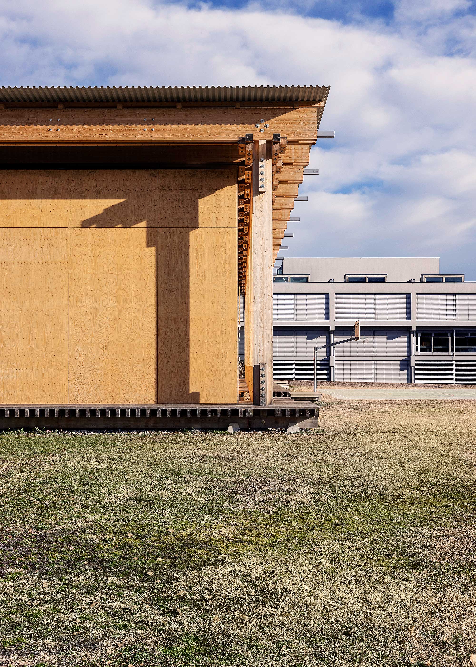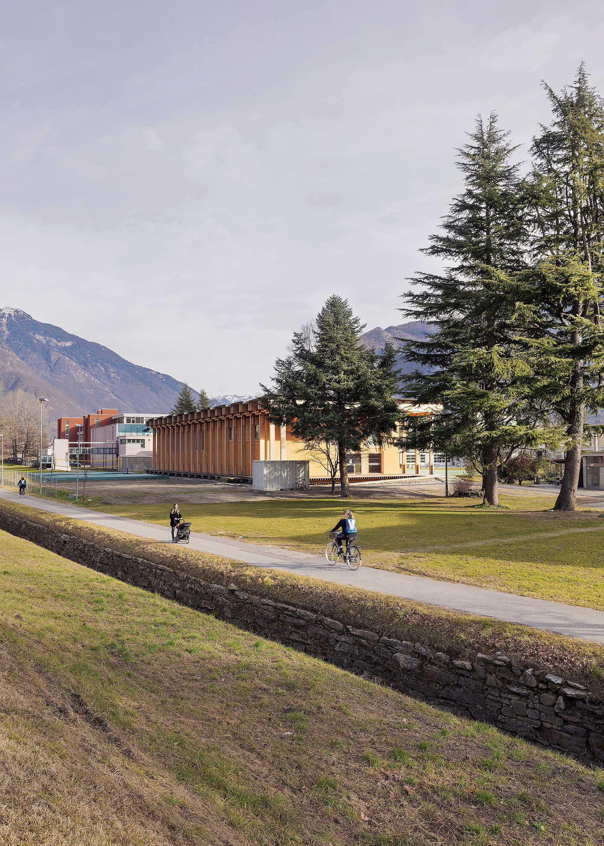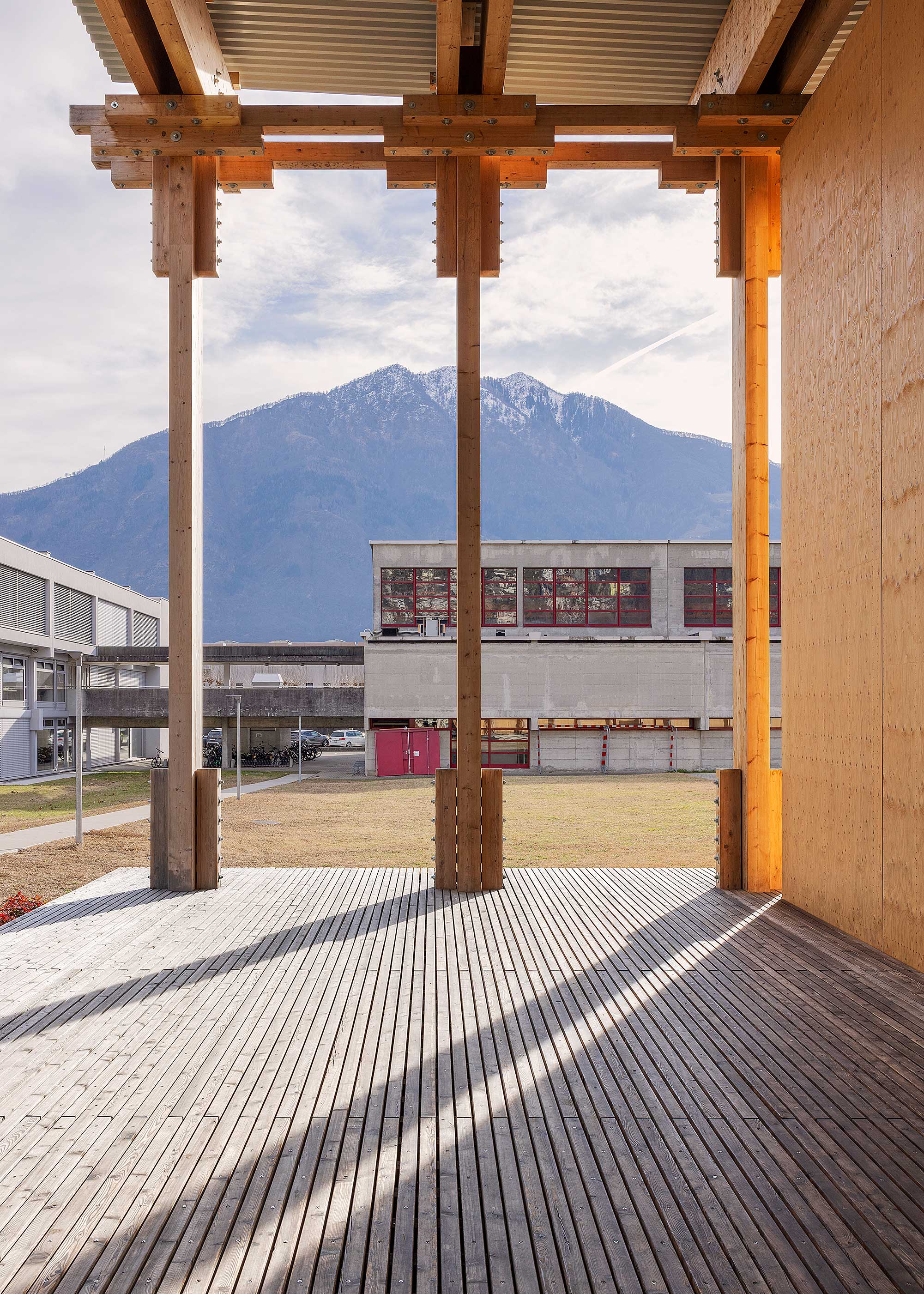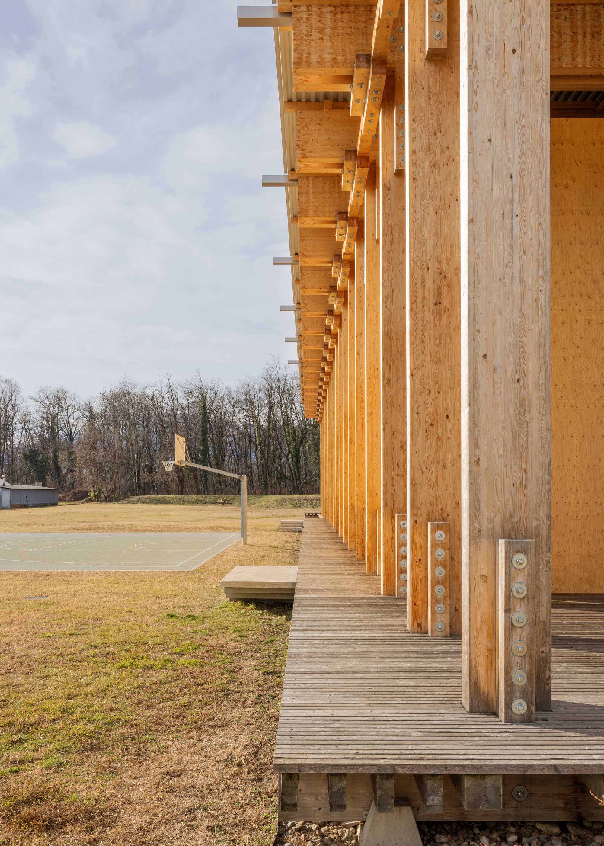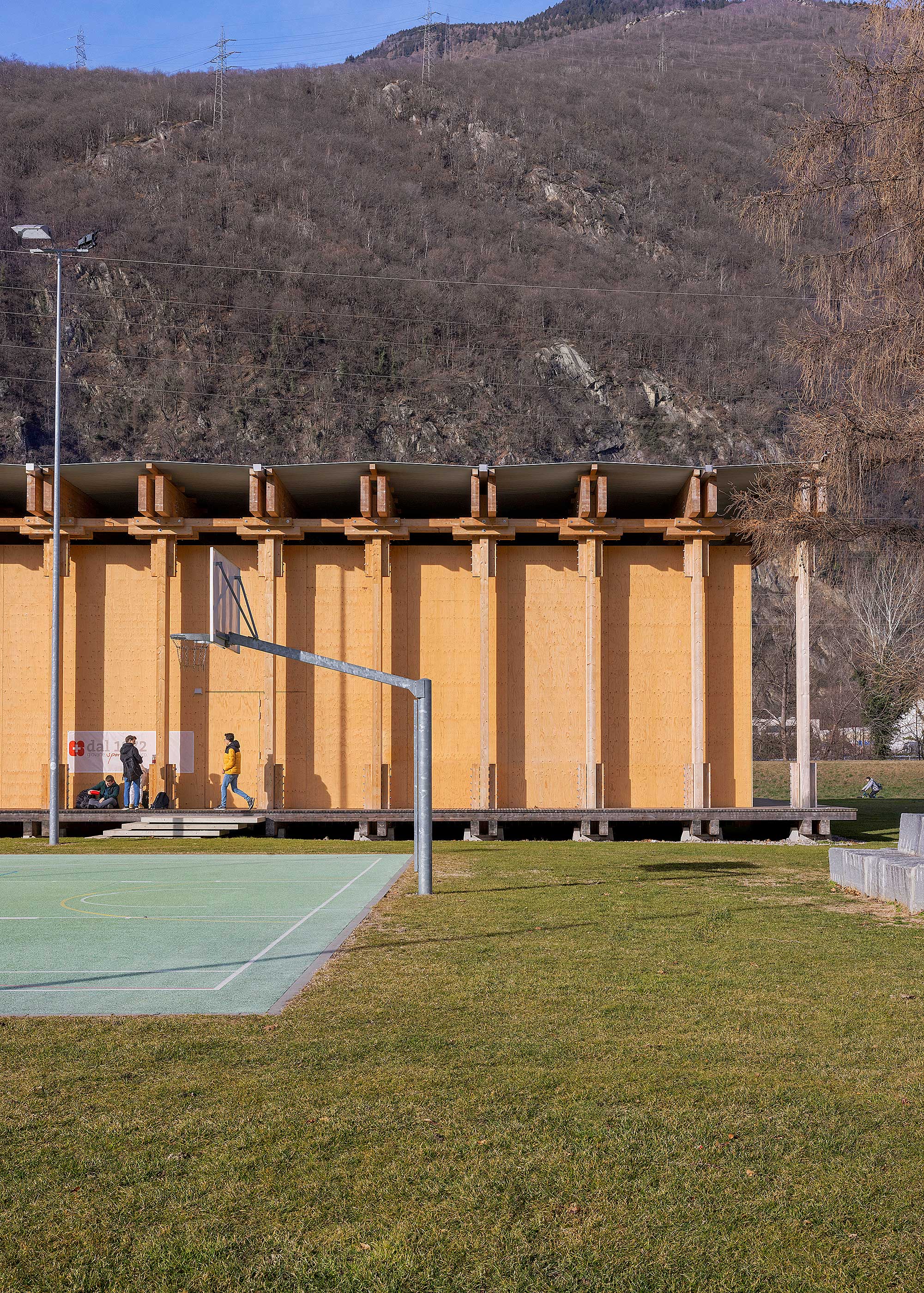 The temporary gyms for the Middle School in Gordola and the Scuola Cantonale di Commercio in Bellinzona are undoubtedly a very interesting spatial experiment. The need to quickly prepare the two facilities for physical education classes led studio Fiorini Architetti to create a prototype of a flexible and economical temporary gymnasium. The design uses wooden frames arranged regularly in a tight rhythm that alludes to a kind of classical order translated into a contemporary key. Inside, a 'box' of wooden floors and walls defies the traditional concept of cladding, composed of elements that can be easily transported and stored for disassembly and reassembly. All the woodwork and joinery work was carried out by our infallible team, ready to measure up to the most specific requirements of each project.