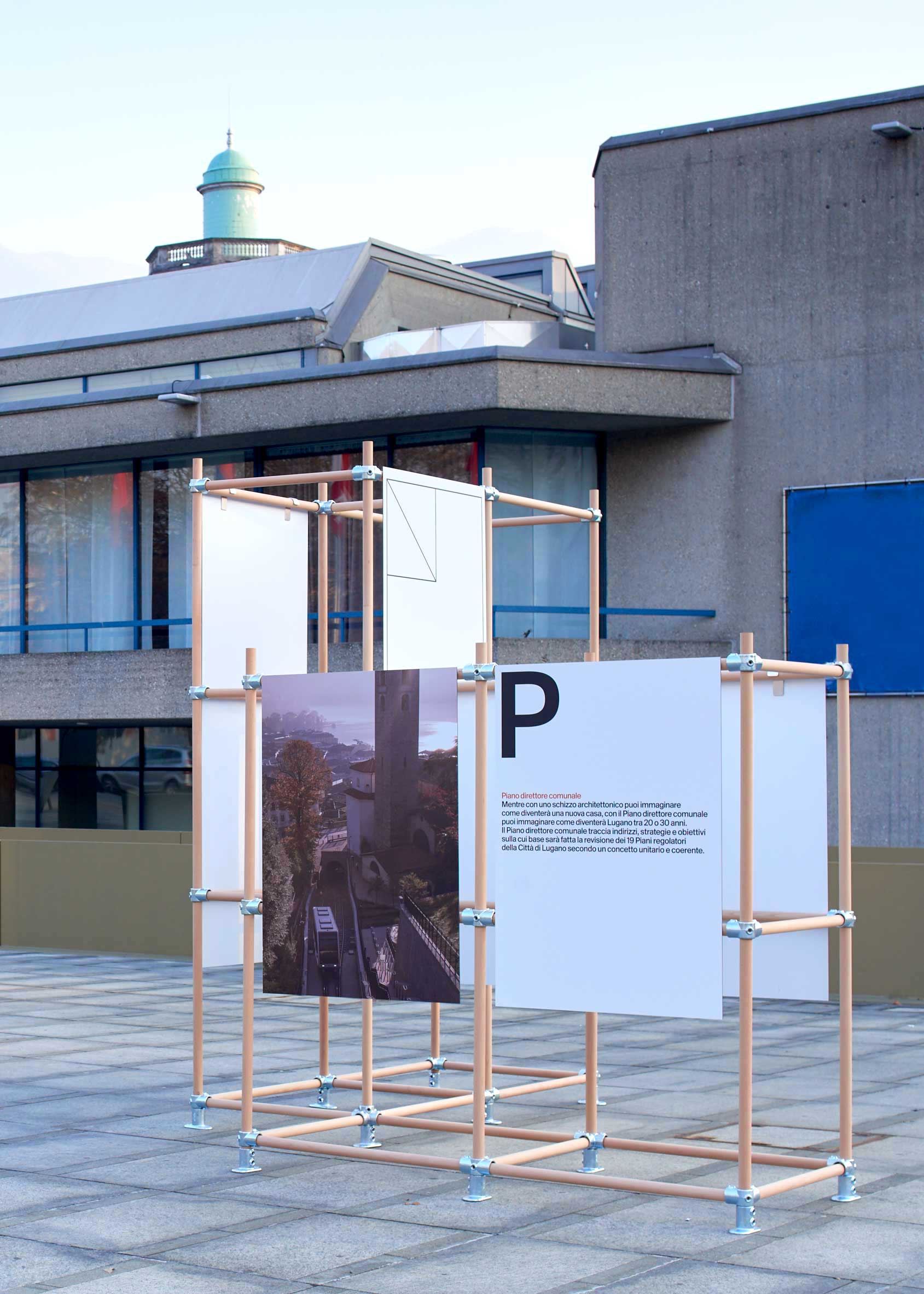 L’elaborazione di “una visione per Lugano” è il compito che hanno ricevuto i gruppi dei mandati di studio in parallelo per la realizzazione del Piano direttore comunale ed è diventato anche lo slogan della campagna di comunicazione. Veragouth e Xilema ha contribuito alla presentazione ufficiale dei risultati dei mandati di studio in parallelo realizzando la struttura espositiva dei tre progetti finalisti in mostra al Palazzo dei Congressi il 24 gennaio 2022. L’allestimento in barre tonde di faggio con giunti metallici, pensato da Sabrina Cerea e Leonardo Angelucci, richiama gli elementi principali del progetto: la suddivisione dello spazio in moduli e la ricomposizione secondo combinazioni sempre diverse.