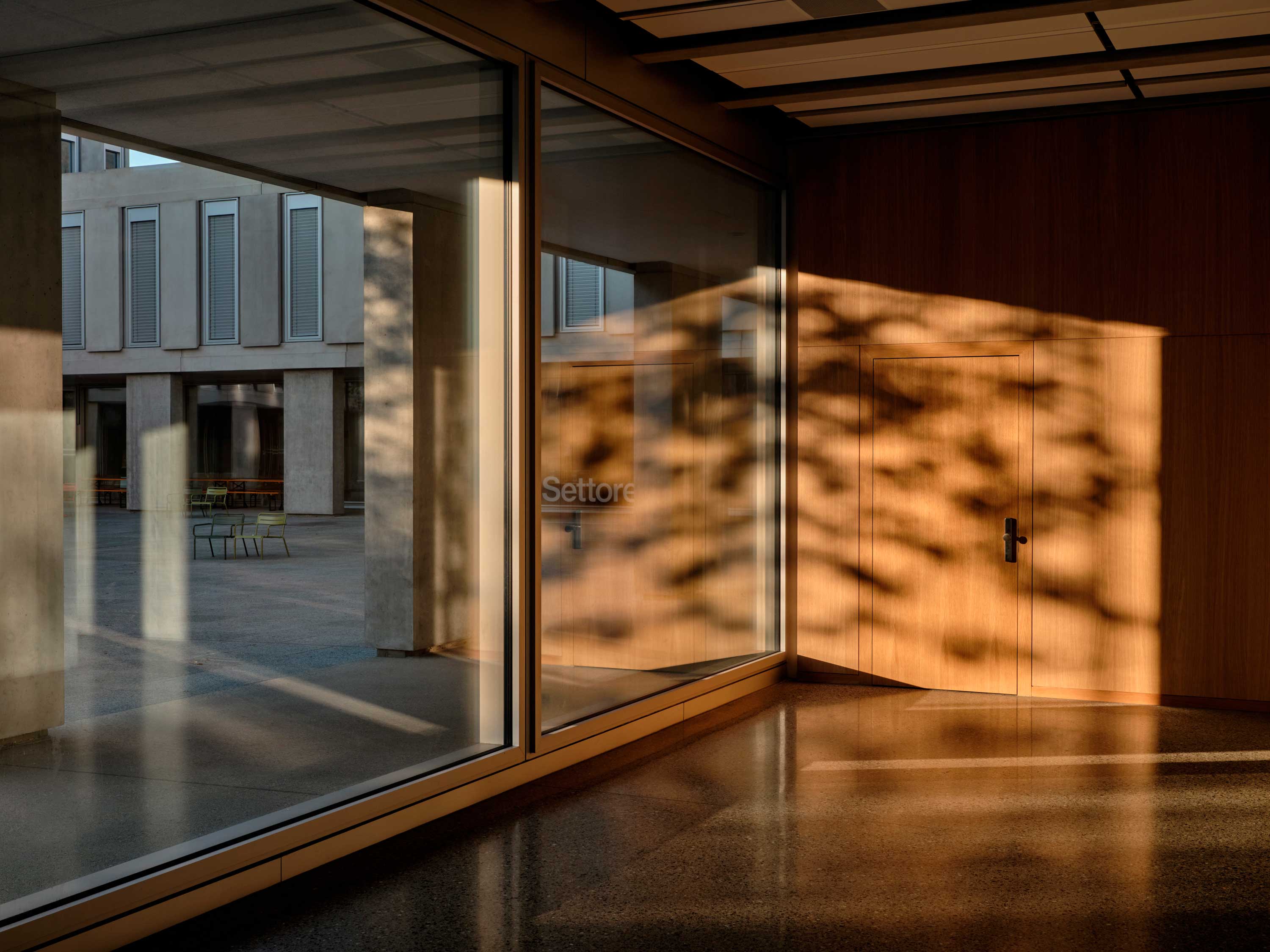 Il nuovo campus universitario per USI e SUPSI a Lugano, situato all’incrocio di Via Madonnetta, a lato del fiume Cassarate, è un edificio che funziona come una città, è allo stesso tempo monumento e infrastruttura e si pone il duplice obiettivo di ospitare circa 1.600 persone e fungere da collante tra i due quartieri di Lugano. Ci siamo occupati dei rivestimenti di porte e pareti in rovere fiammato rigatino, del pulpito della sala conferenza e di oltre 700 porte. Ciò che rende unico questo edificio è la scelta di realizzare ogni prodotto completamente su misura, abbinata alla serialità di alcuni elementi, che ha permesso la gestione di un cantiere snello e la realizzazione di un impianto flessibile per rispondere alle mutazioni nel tempo. La scelta del legno è la soluzione ideale per compensare la struttura in cemento a vista. Il risultato è un edificio maestoso, moderno e innovativo e allo stesso tempo accogliente, con il giusto calore per diventare un punto di riferimento non solo per gli studenti ma per l’intera città.