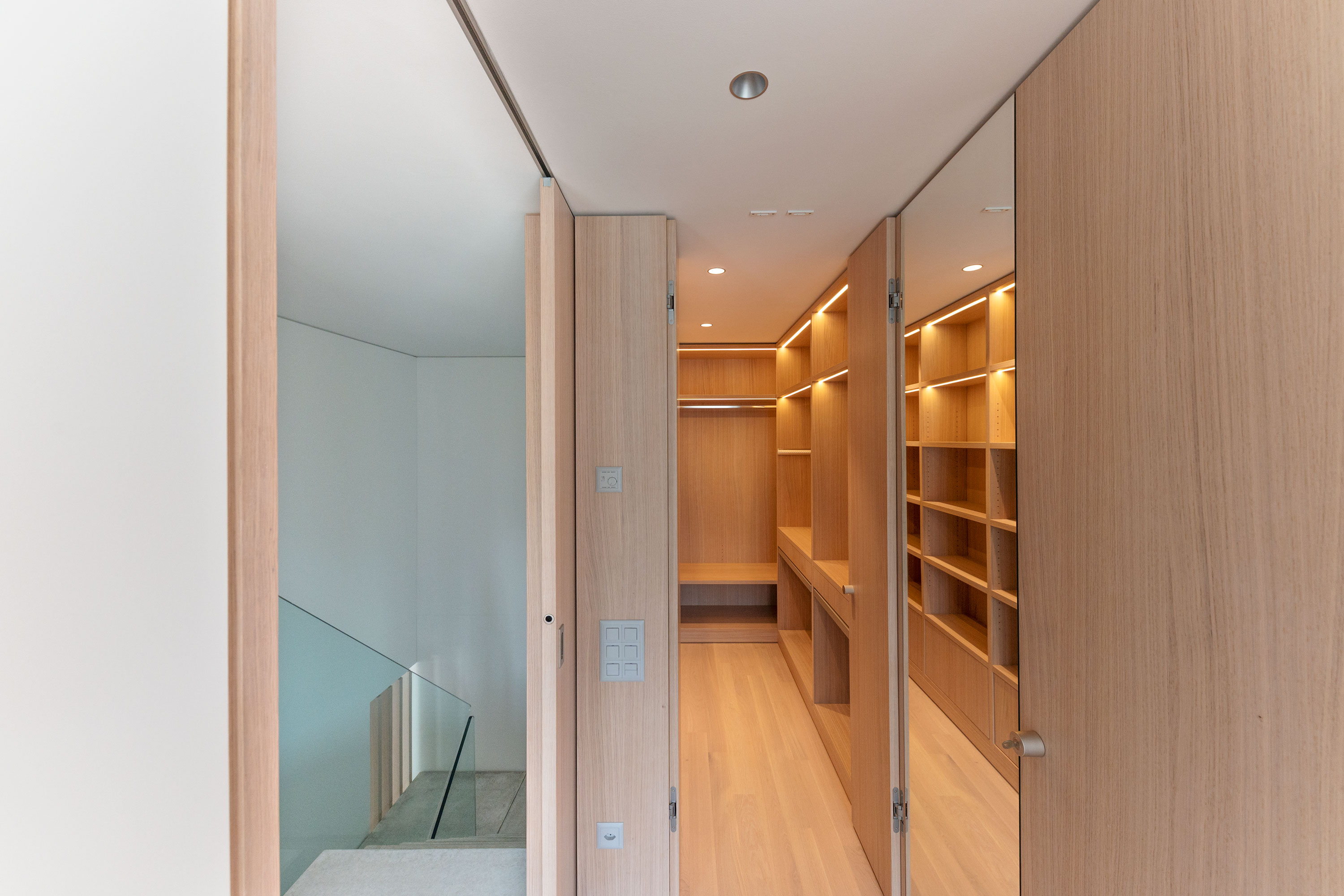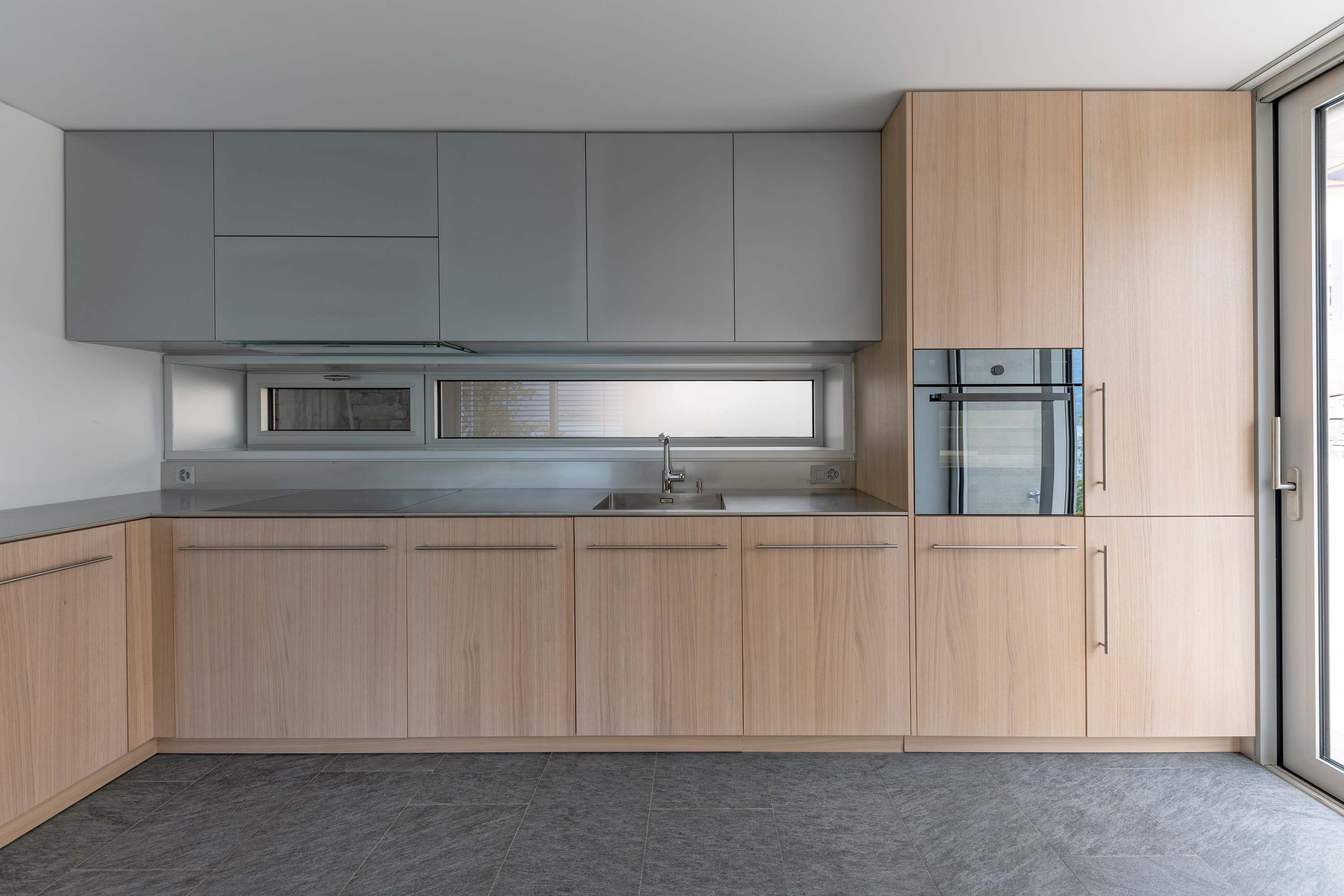 Casa Quattrini a Minusio si affaccia direttamente su Rivapiana e il Lago Maggiore. Il progetto prevede la costruzione di una nuova abitazione plurifamiliare composta da tre appartamenti: un’abitazione con 5.5 locali disposti su due livelli, una con 2.5 locali al piano primo e al piano terreno e un piano inferiore con cantina, deposito e locale tecnico. La realizzazione è caratterizzata da ampi loggiati laterali che si affacciano sul paesaggio circostante e, grazie alla struttura in calcestruzzo, diventano una sorta di meridiana solare che con la luce racconta il trascorrere del tempo. Veragouth e Xilema ha realizzato su misura tutti i lavori di falegnameria, come armadi, mobili e librerie, cucine, rivestimenti e porte, prestando particolare attenzione alla resa estetica e all’ottimizzazione dello spazio. Per questo motivo la testata del letto diventa libreria, la cucina è combinata con il parapetto e la scrivania e le porte scorrevoli sono rivestite con armadi. Il risultato è un’abitazione accogliente e curata nei minimi dettagli, in cui tutti gli elementi sono in armonia tra loro.