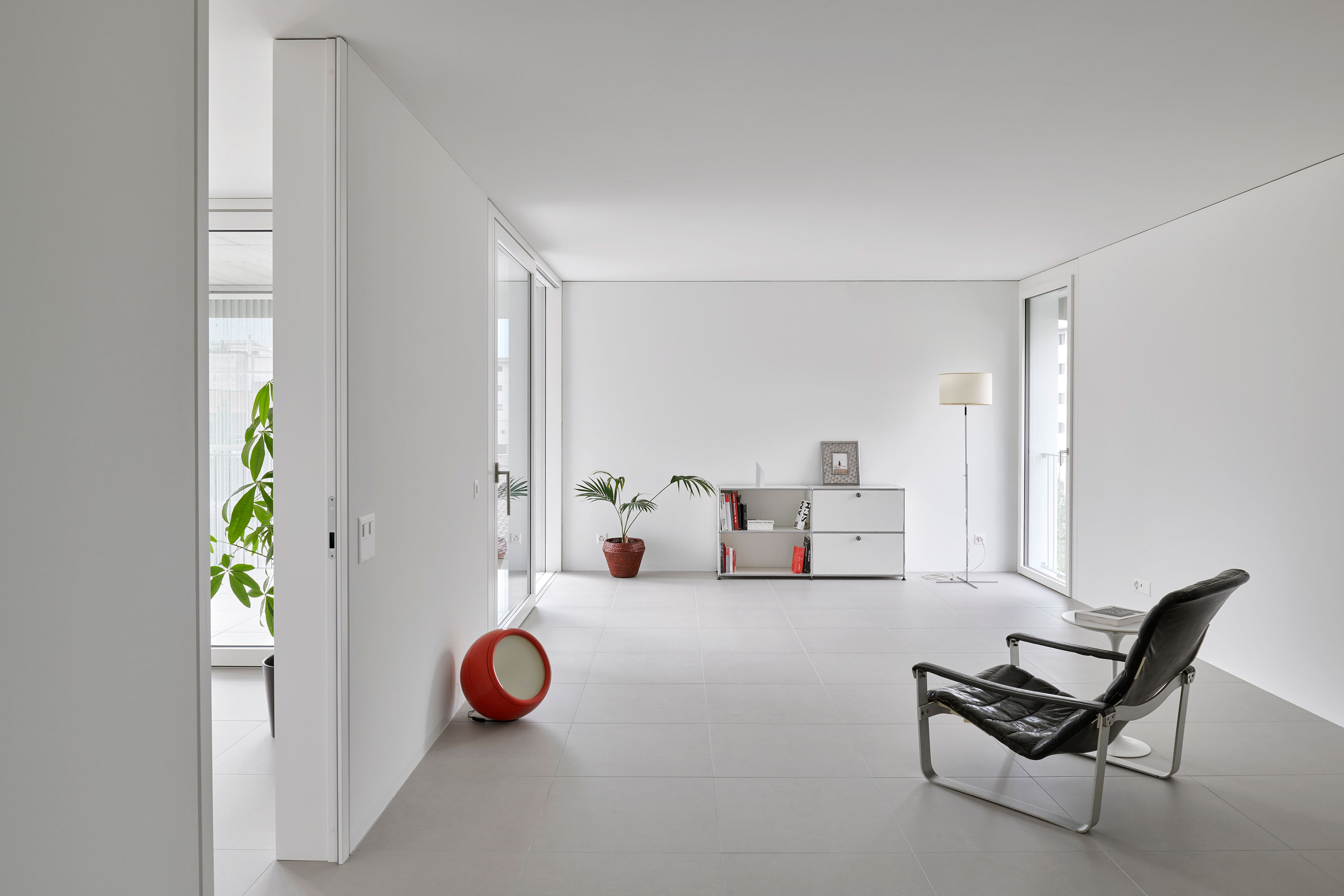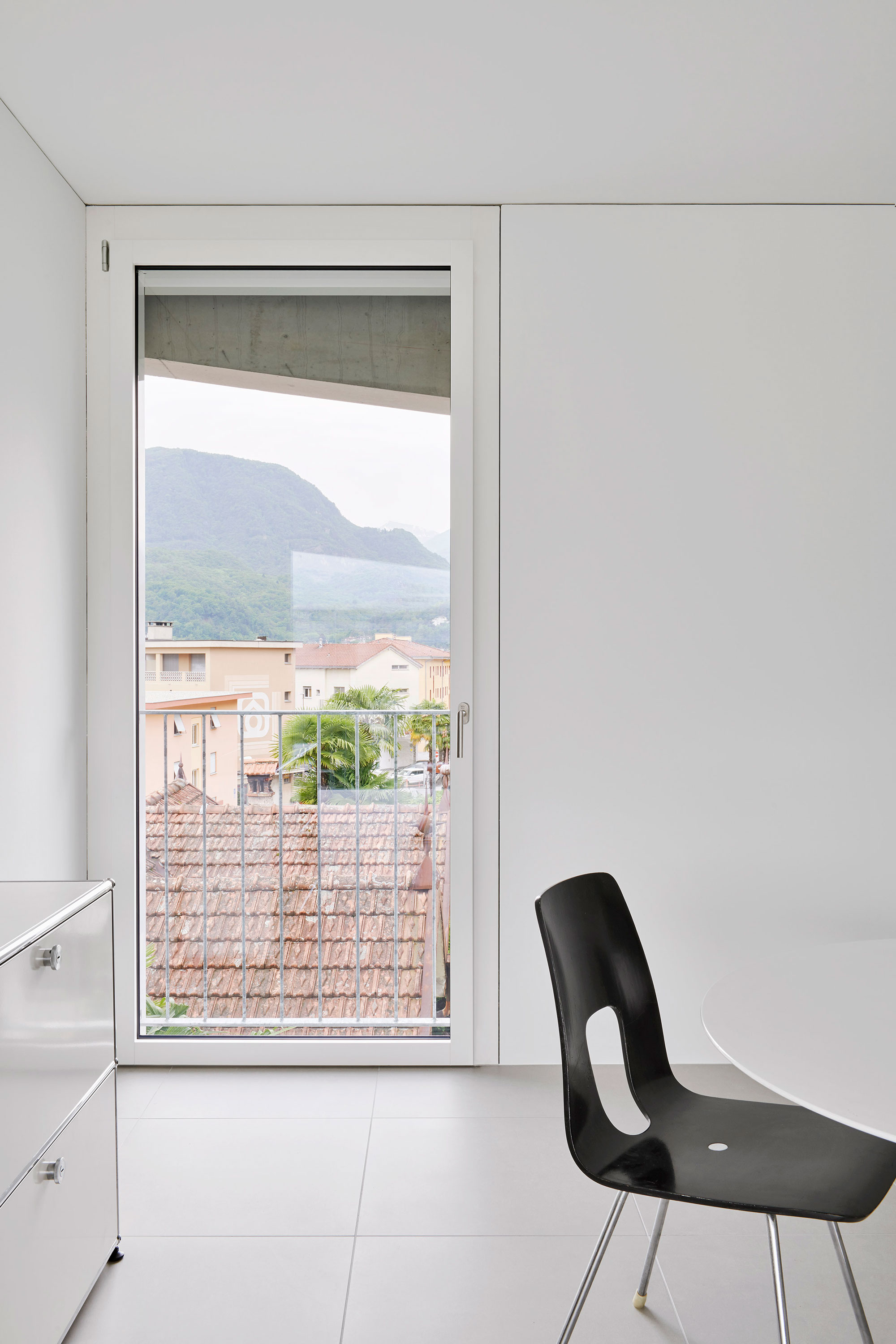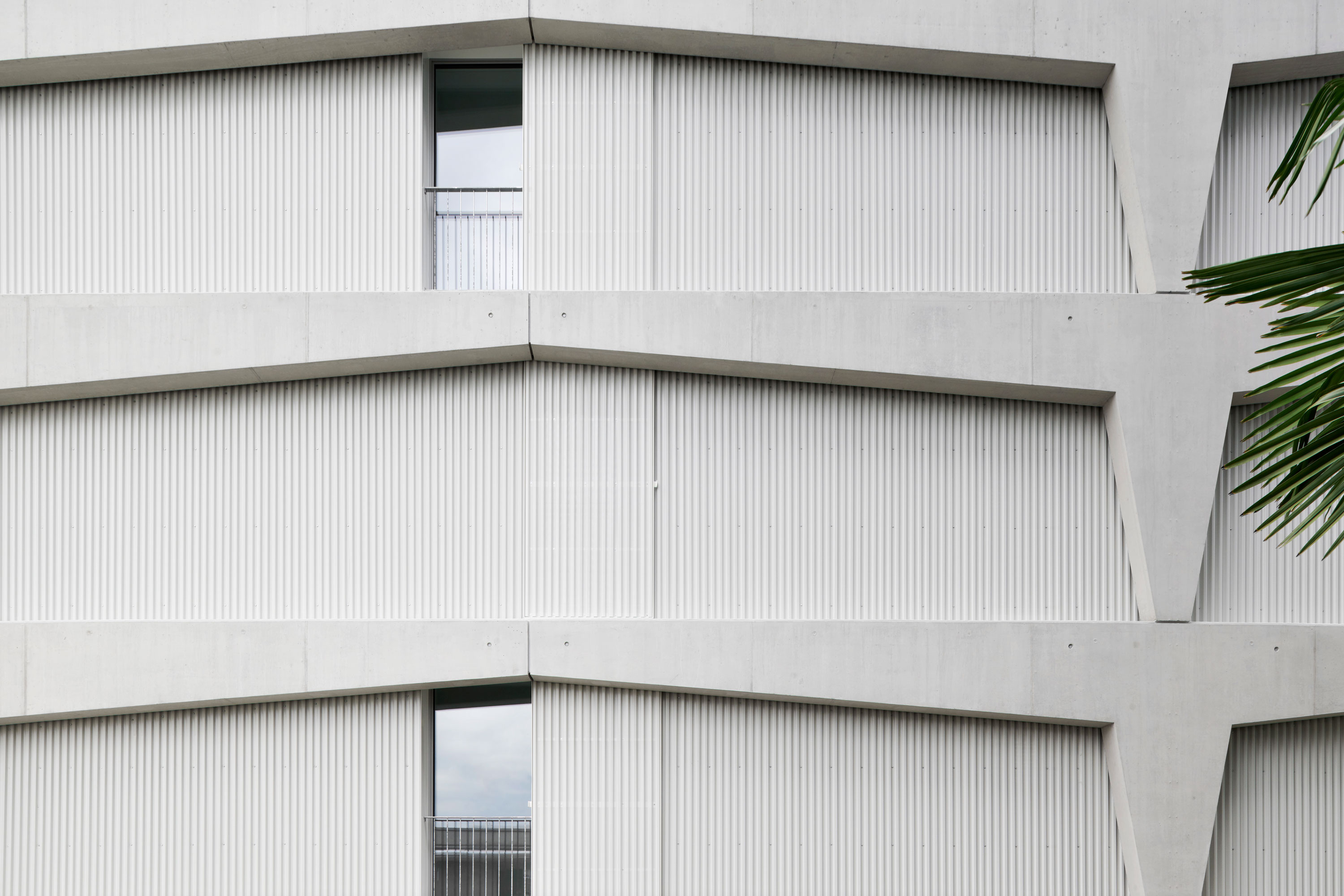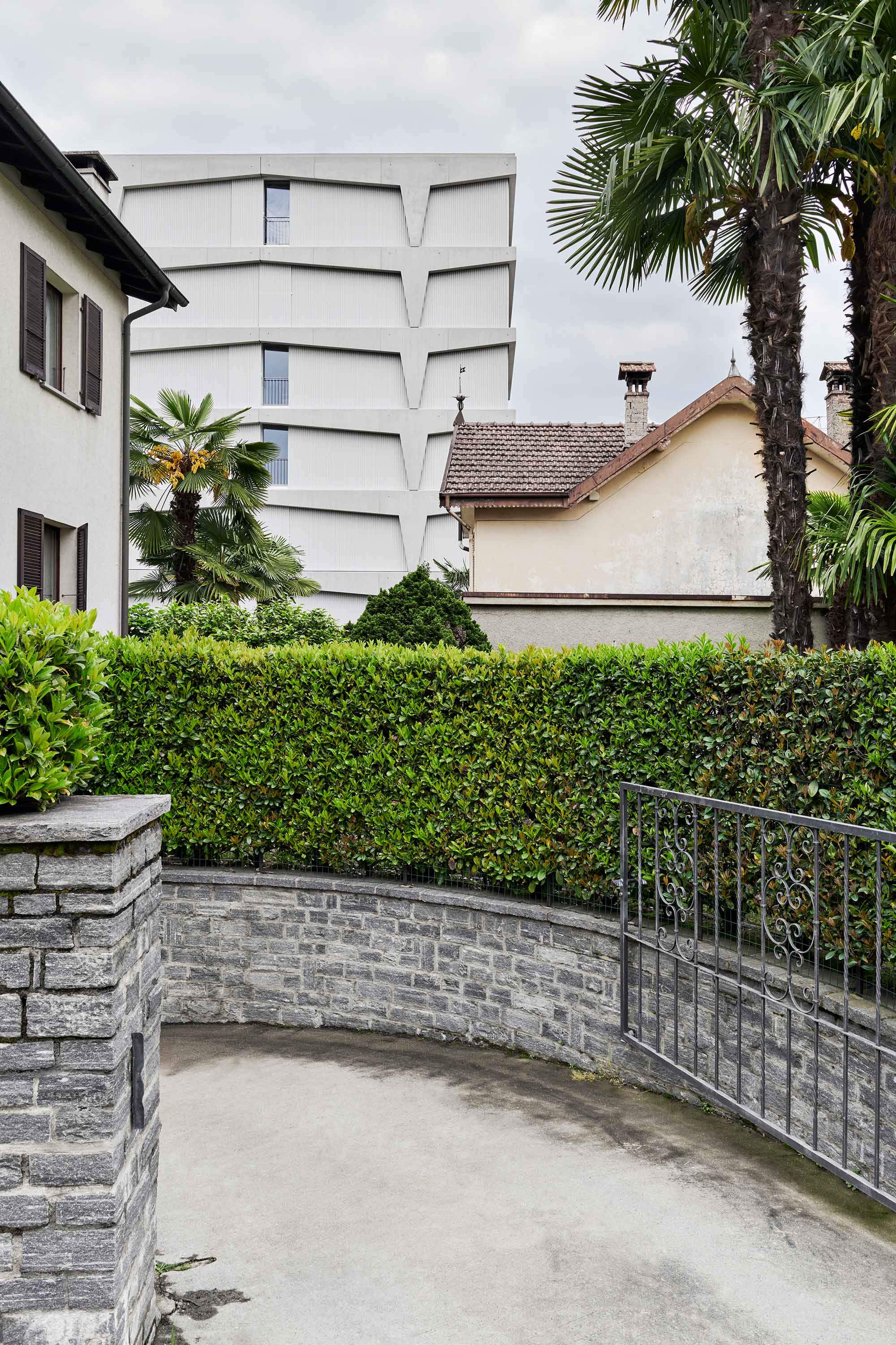 Il palazzo sorge in una zona originariamente agricola e destinata ora alla residenza, alle attività commerciali, di servizio e produttive; è quindi un quartiere misto, in cui le potenzialità edificatorie sono molto alte. L’edificio, che si sviluppa su sei piani e ospita un appartamento per piano, si distingue e caratterizza per il tamponamento prefabbricato perimetrale rivestito in lamiera microforata, un richiamo al carattere semi-industriale e artigianale del comparto urbano e una scelta di modalità espressive moderniste, nel solco dei maestri locarnesi della “Tendenza”.